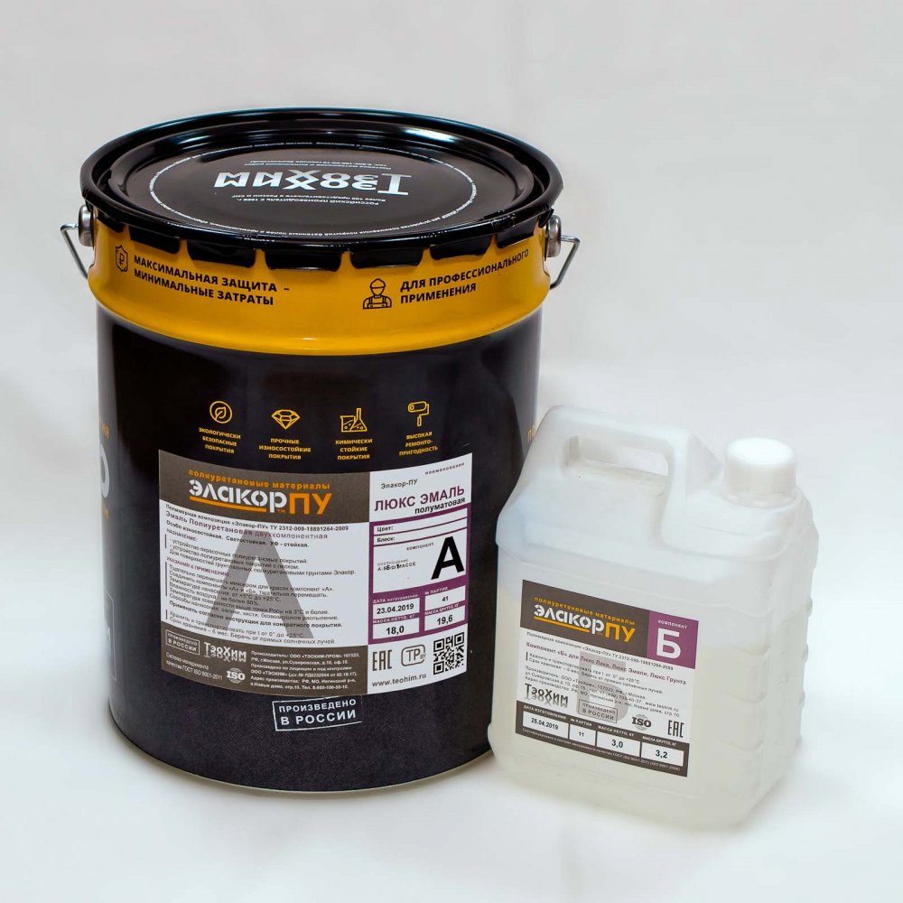 Люкс Эмаль Светостойкая Полуматовая "Элакор-ПУ Эмаль Люкс – краска двухкомпонентная полиуретановая светостойкая, УФ-стойкая. Колеровка по «RAL». Блеск глянцевый / полуглянцевый. Для устройства защитно-декоративных износостойких покрытий. Для эксплуатации
